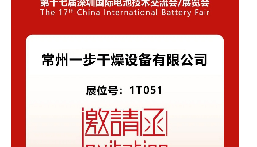 在电池技术领域蓬勃发展的当下,CIBF2025深圳电池展即将于2025年5月15日-17日在深圳国际博览中心盛大开幕。作为深耕电池材料干燥领域30年的国家专精特新小巨人企业,一步干燥长期致力于为电池材料干燥行业提供高效、优质的一站式解决方案。一步干燥诚挚邀请您参加第十七届深圳国际电池技术交流会,我们将在 1T051 展位恭候您的莅临,共襄盛会。
